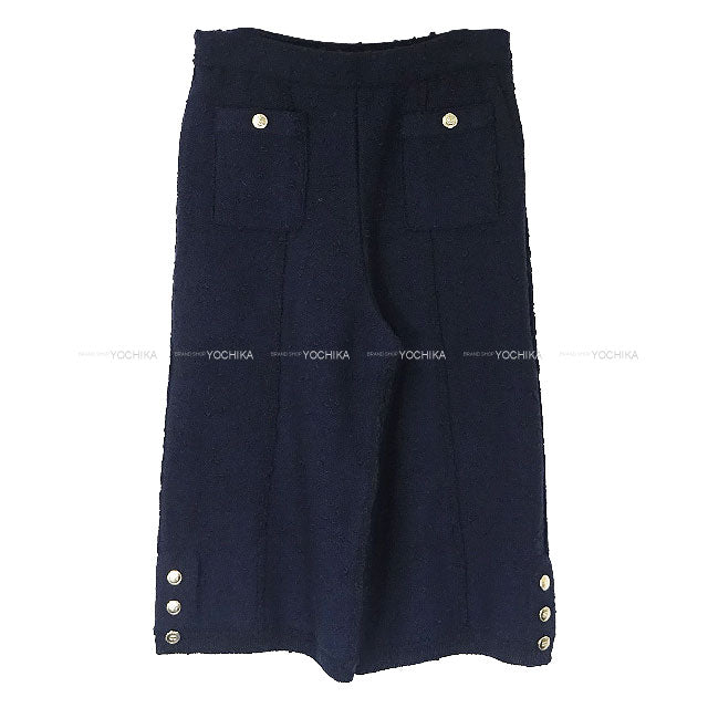 2024AW CHANEL Pants Bermuda Simple Coco Button Knit Navy blue Wool #40 Champagne Gold HW P78444[BRAND NEW][Authentic]