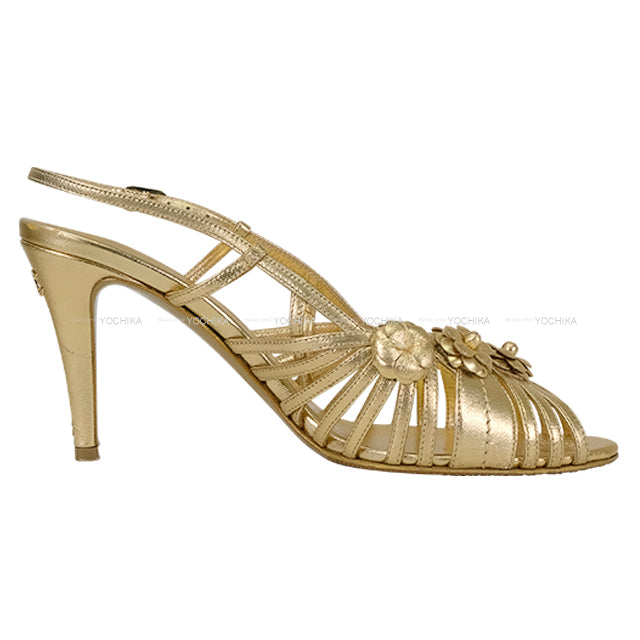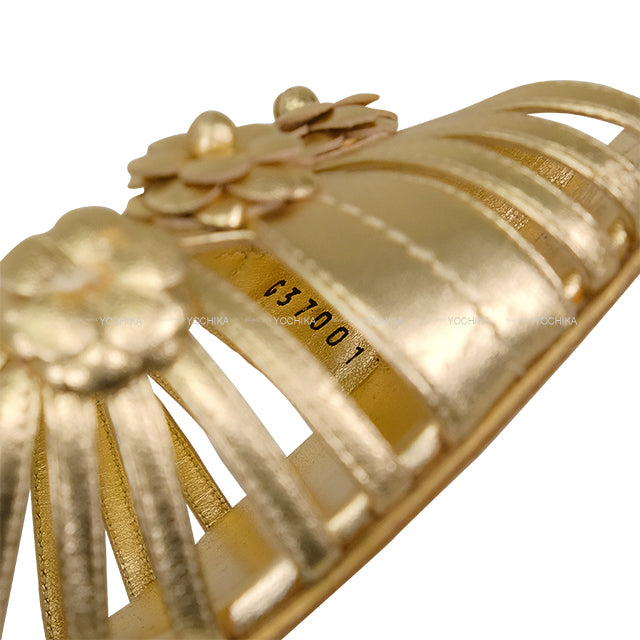 [Pre-loved] CHANEL pumps Ladies Camelia Gold Leather #38 G37001[LIKE NEW][Authentic]