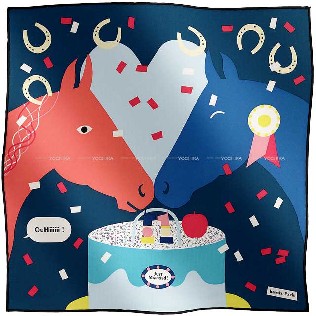 Hermes scarf in the 45 carre size Just Married has just arrived. Featuring a beautiful combination of refreshing Ciel, charming Rose, and deep Marine tones, this piece captivates with its elegant color palette. Crafted from 100% silk, it offers a smooth texture and refined sheen, adding a sophisticated accent to your bag, hair styling, or around the neck. Compact yet striking in design, it also makes a wonderful gift. We invite you to take this opportunity to enjoy it. Color:Ciel(7G)/Rose(5T)/Marine Material:Silk100% Accessories:box Product Condition: EXCELLENT SKU:25120313