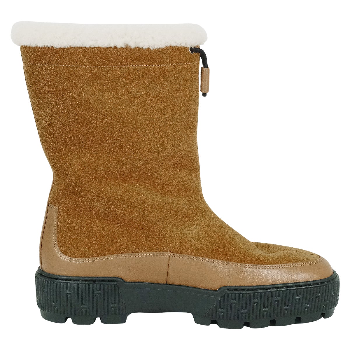 Crafted from premium suede combined with warm shearling, this pair offers both elegance and practicality. The understated brown color adds a refined accent to any outfit and is perfect for the fall and winter seasons. The shearling lining gently wraps your feet for exceptional comfort. Suitable for everyday wear as well as special outings. A true reflection of HERMES quality, these boots are designed to be cherished for years to come. Color:Brown Material:Suede/Shearling