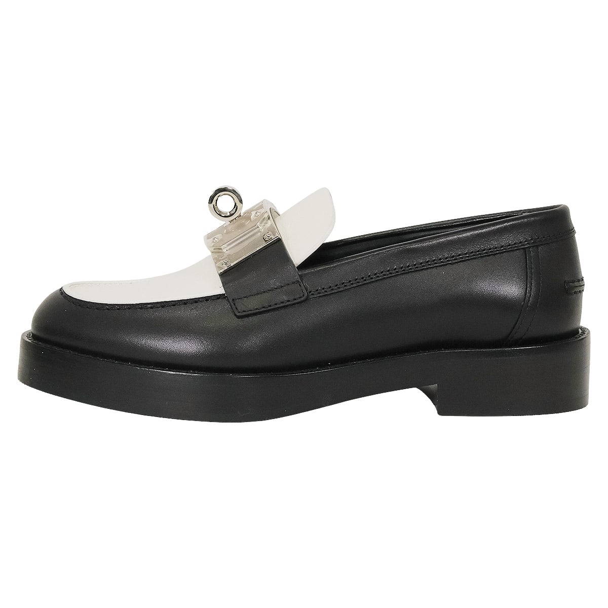 HERMES loafers Hot Kelly Bangle Noir (Black)/Blanc (White) Calf #35 Silver HW H2320752[ALMOST NEW][Authentic]