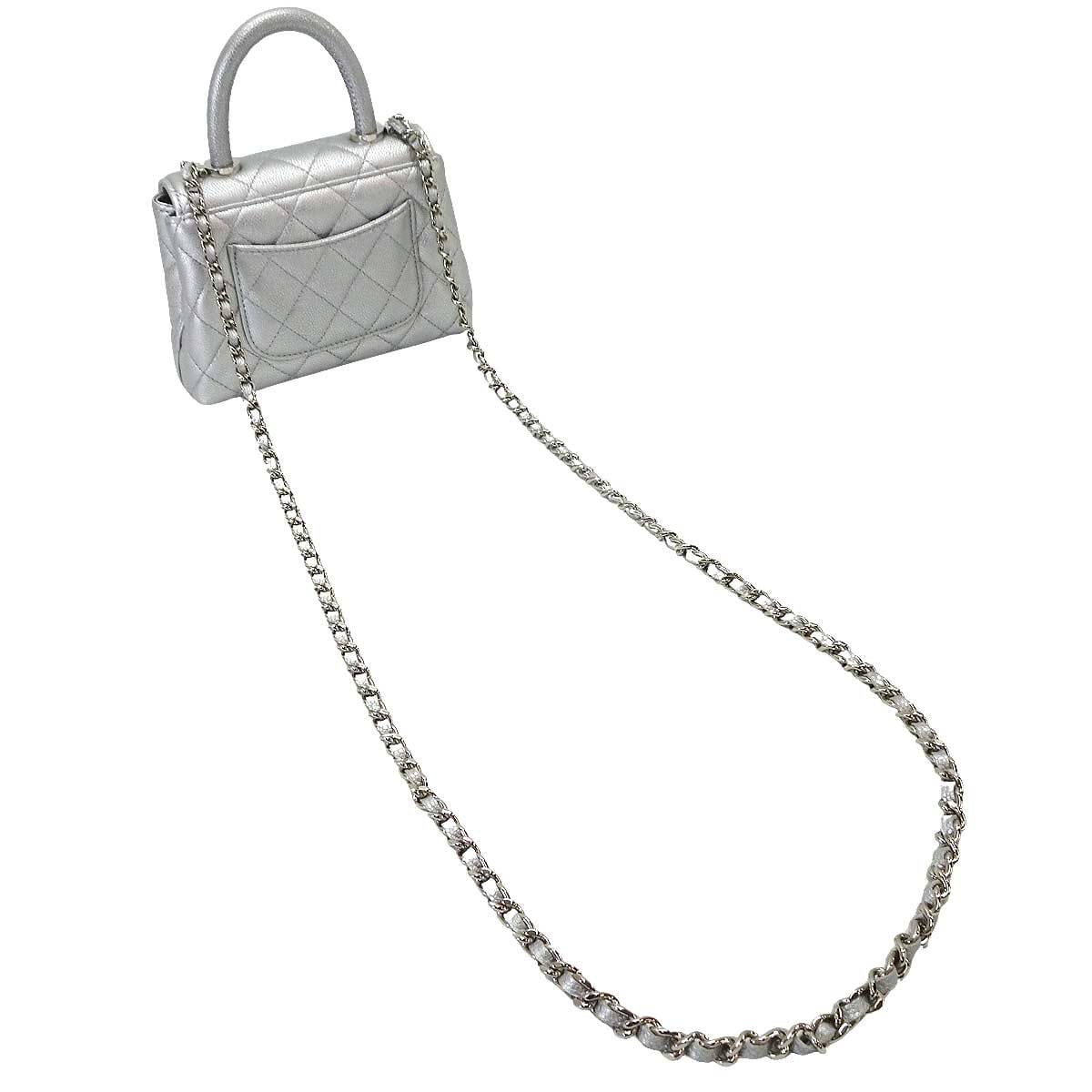 CHANEL Shoulder bag Matelasse COCO Handle Mini Silver Graind Calf(Caviarskin) Silver HW AP4244[EXCELLENT][Authentic]