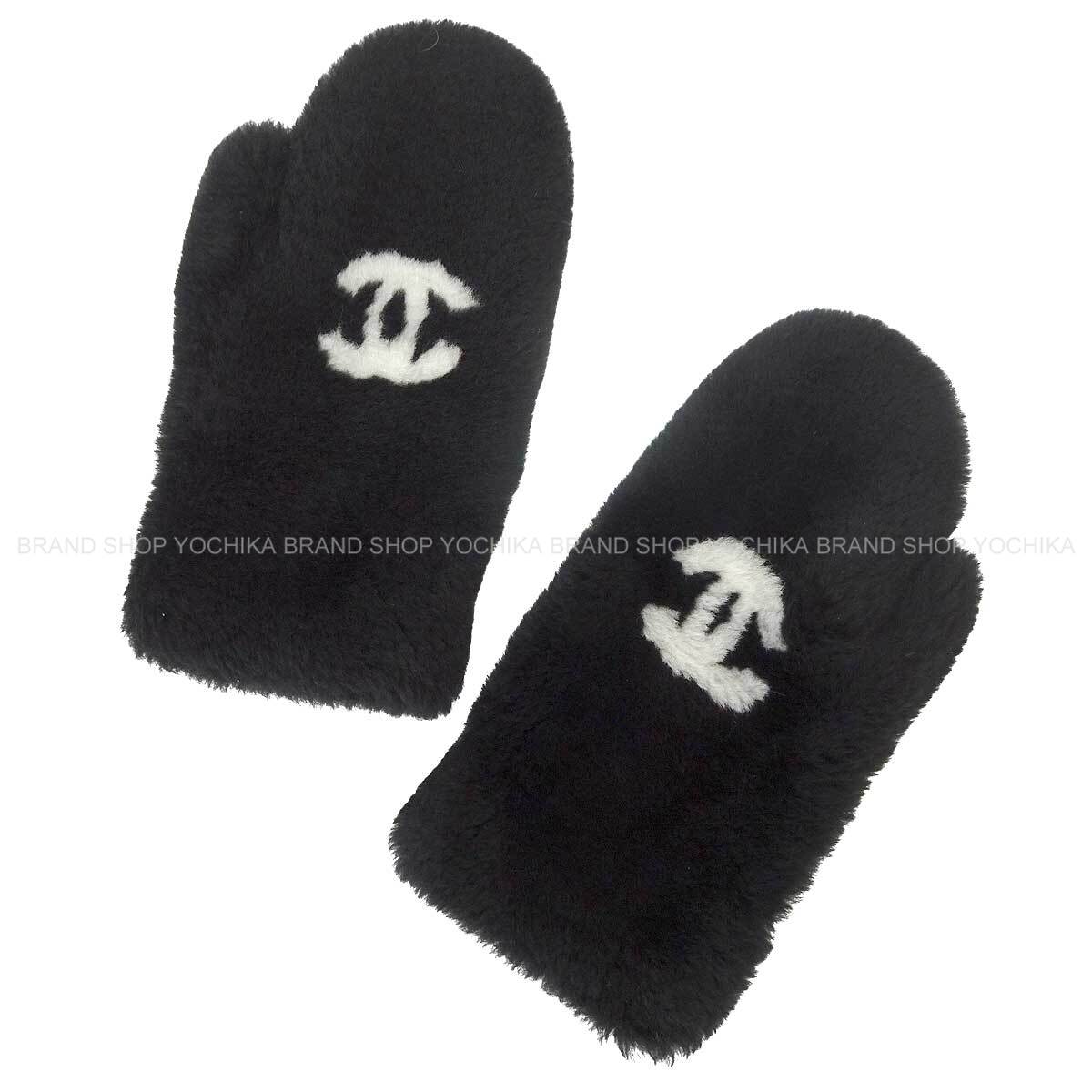 [Pre-loved] 2025AW CHANEL glove COCO Neige Mittens Noir (Black)/Blanc (White) Shearling Lambskin/Cashmere/Silk AAB289[LIKE NEW][Authentic]