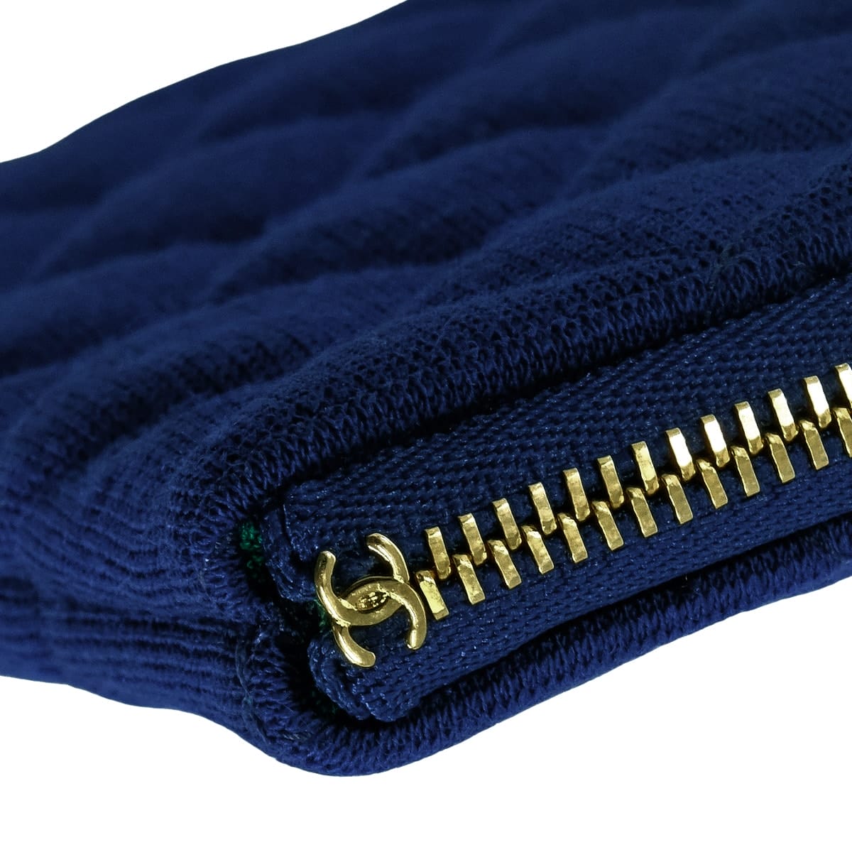 CHANEL Clutch bag Matelasse Coco Mark Flat ポーチ Navy/Green Cotton Gold HW A82545[EXCELLENT][Authentic]